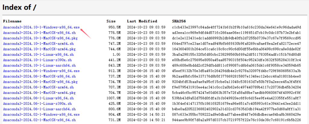 卸载完python后,进入清华园的镜像下载站下载Anaconda:https://repo.anaconda.com/archive/