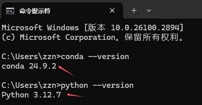 语法为 conda create -n + 环境名称 + 使用python的版本数