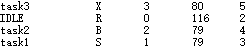 'X'(运行) 'B'(阻塞)、'R'(就绪)、'S'(暂停)或 'D'(删除)。